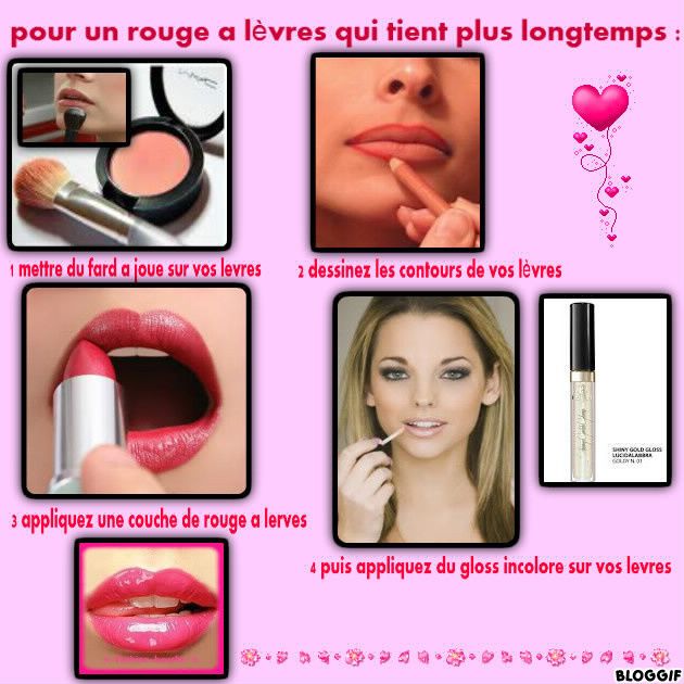1: Appliquer du fard a joue sur vos lèvres , (pour faire tenir votre rouge à.l.)