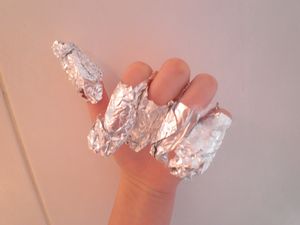 3)Puis pour le faire tenir, enroulez du papier d'aluminium contre votre doigt,
